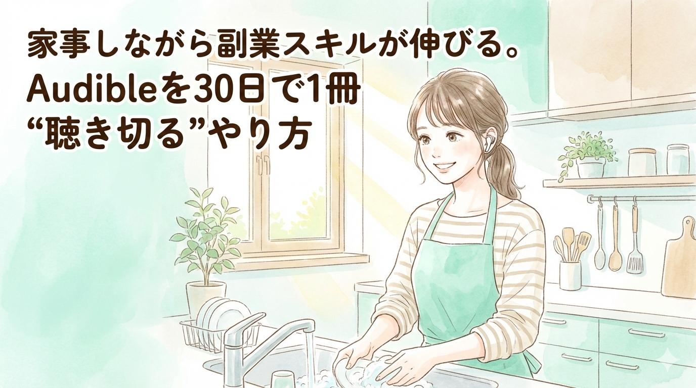 この記事では、登録して満足するのではなく、「30日で1冊を完走する」ための方法を、家事 × 副業という切り口でわかりやすくまとめました。
