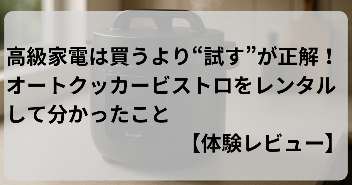 仕事終わりに「今日は外で済ませようかな…」という日、ありますよね。自分も料理は得意なほうではなく、毎日キッチンに立つのは正直ハードルが高いと感じていました。そこで出会ったのが、パナソニックの自動調理鍋「オートクッカービストロ(NF-AC1000)」。結論から言うと、買う前に公式レンタルで試すのがいちばん効率的でした。
